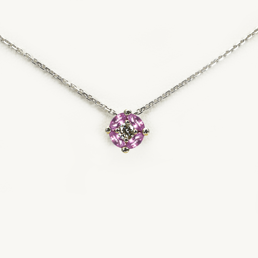 or blanc 18 carats – environ 5g – diamant (0,17 carat) – saphir rose (0,63 carat)