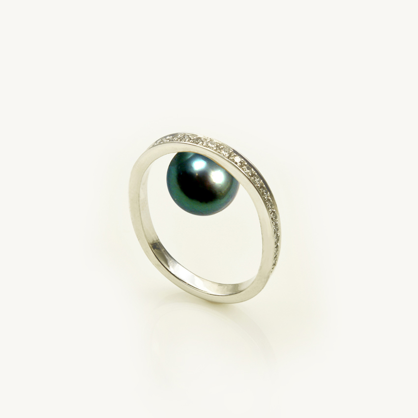 18 carats white gold – around 4,40g – black pearl – brillants (0,23 carat)