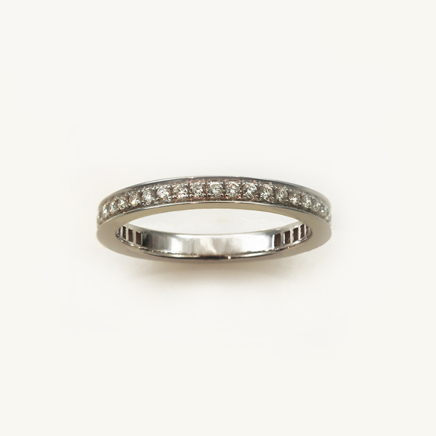 Un anneau de lumière, un pavage de diamants. Lumineuse, raffinée, l’alliance Palaos et son chapelet de diamants égraine la pérennité d’une relation sans nuage.