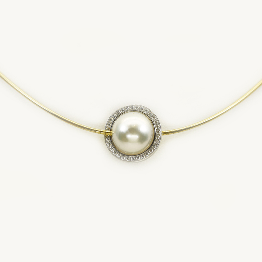 18 carats white gold – around 9,15g – white pearl – brillants (0,30 carat)