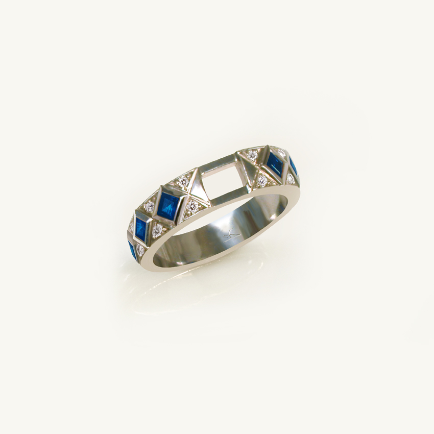 or blanc 18 carats – environ 5,70g – saphirs (0,88 carat) – brillants (0,15 carat)