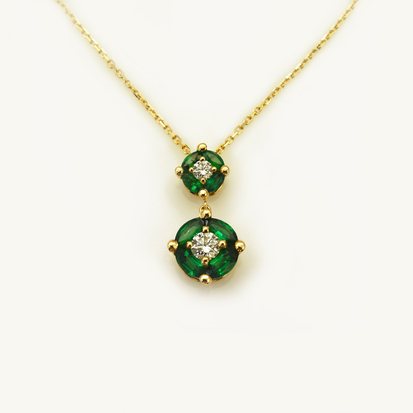 or jaune 18 carats – environ 7,30g – diamants (0,11 carat et 0,29 carat) – émeraude (0,40 carat et 1,02 carat) – brillants (0,02 carat)