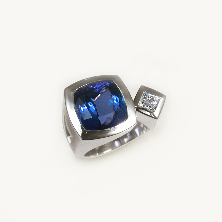 18 carats white gold – around 17g – tanzanite (9,16 carats) – diamond (0,42 carat)