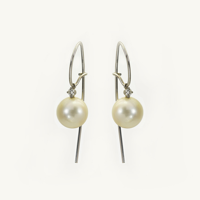 18 carats white gold – around 2,20g – white pearls – brillants (0,22 carat)