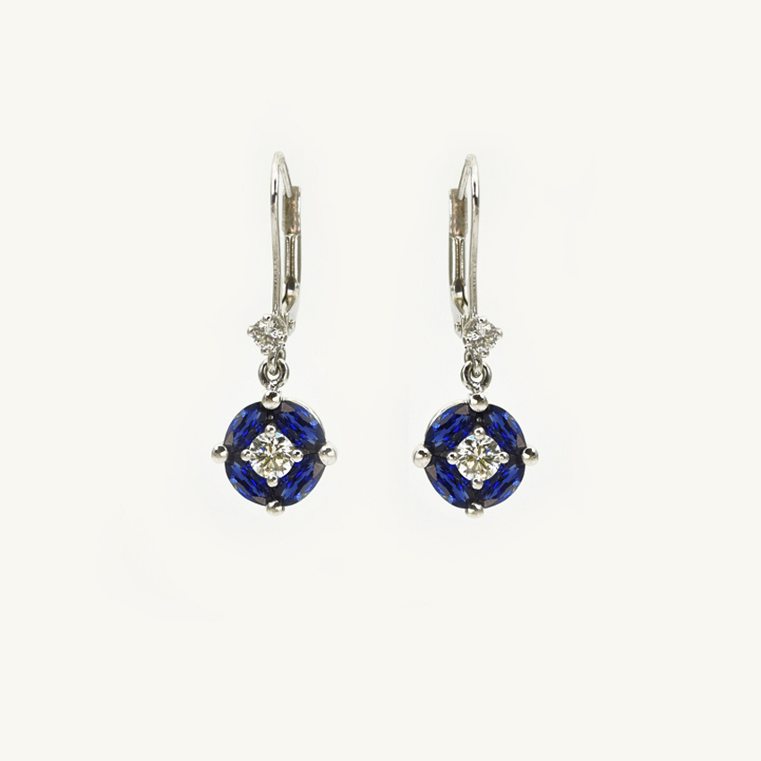 18 carats white gold – around 3,70g – diamond (0,32 carat) – sapphire (1,26 carat) – brillants (0,15 carat)