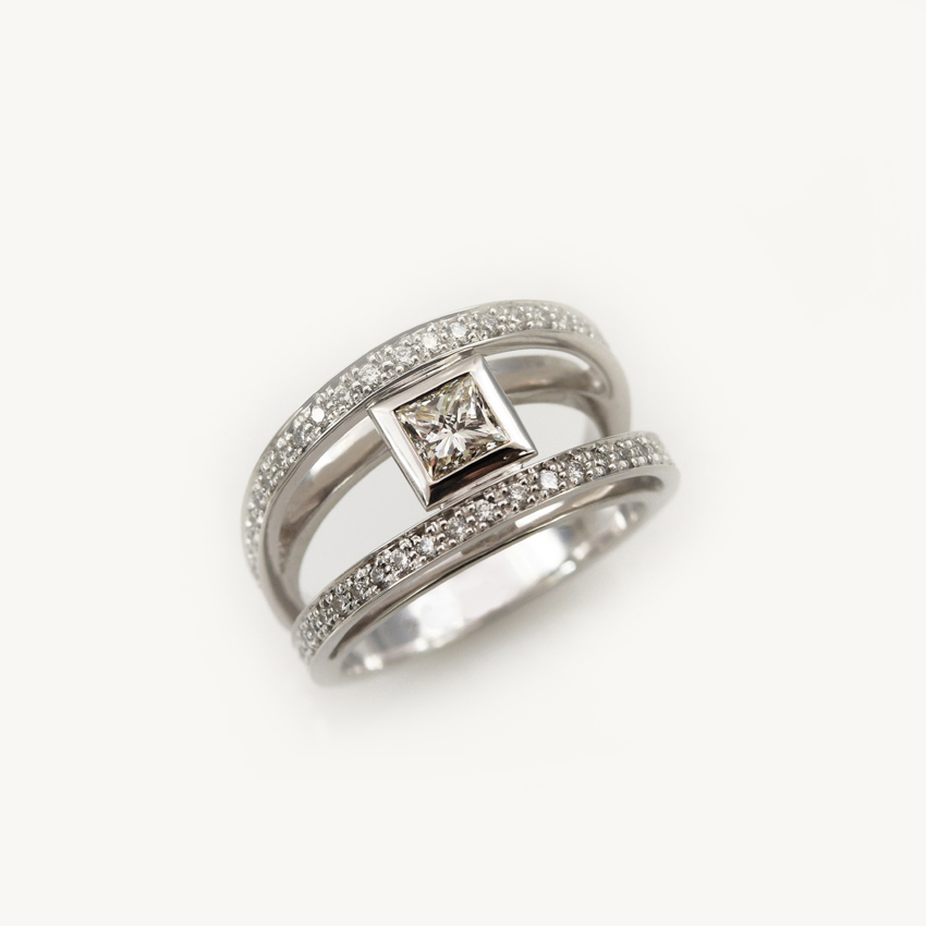 18 carats white gold – around 9g – diamond (0,41 carat) – brillants (0,45 carat)