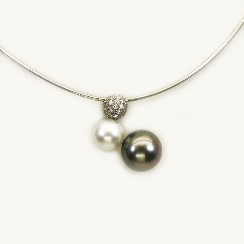 18 carats white gold – around 10,60g – black and white pearls – brillants (0,45 carat)