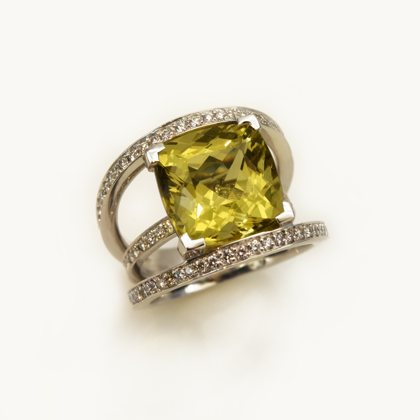 Ces méandres de courbes aux harmonies parfaites assurent volume et légèreté aux bijoux où les pierres sont sublimées. David VANGELDER rend ici hommage à l’art graphique.