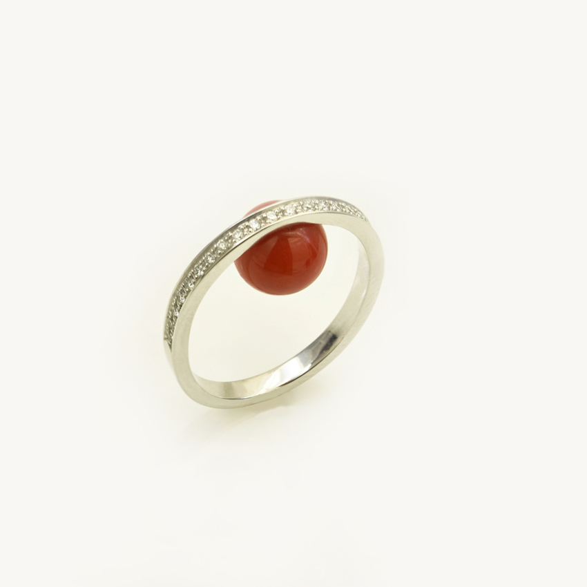or blanc 18 carats – environ 4,10g – perle corail – brillants (0,23 carat)