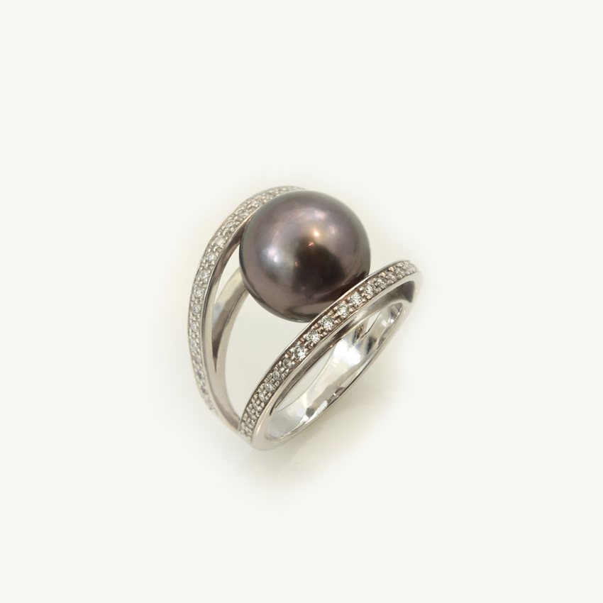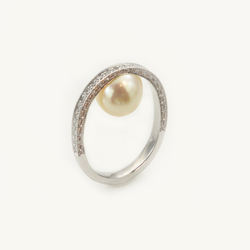 Une fois portée, la monture de cette bague se fait discète sous l’excellence de la perle. Un solitaire où la perle caressera votre peau. Le corps, un ruban pavé de diamant, peut se porter également en pendentif. Un bijou au volume inhabituel, une bague incroyablement actuelle destinée à casser les stéréotypes de la perle comme bijou de famille, immuable et sans âge. Une véritable cure de jeunesse.