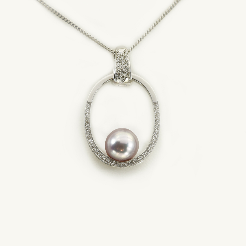 bague : or blanc 18 carats – environ 4,60g – perle rose – brillants (0,80 carat)