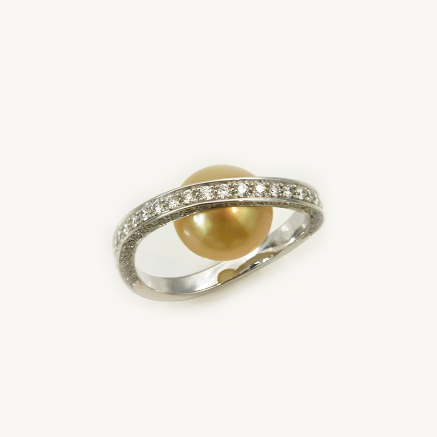 Noire, rose, ou blanche, le créateur livre ici son affection immodérée pour les perles. Il a imaginé une ligne audacieuse. Cette bague se fait discrète ; les perles caresseront votre peau sous un ruban pavé de diamants. Un bijou au volume inhabituel, qui se porte en bague ou en pendentif, incroyablement actuel et destiné à casser les stéréotypes de la perle, immuable et sans âge.