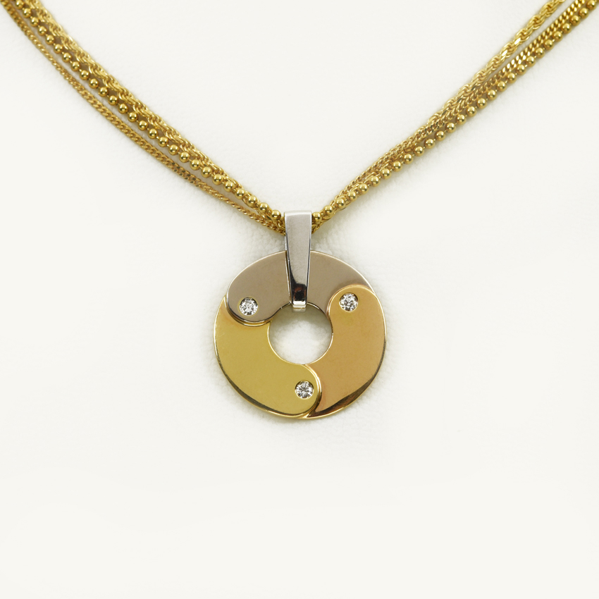 18 carats yellow, white and pink gold – around 8g – brillants (0,13 carat)