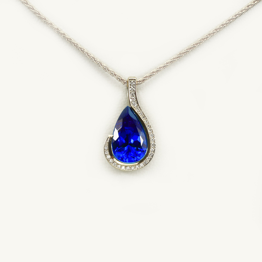 or blanc 18 carats – environ 4,10g – tanzanite (6,35 carats) – brillants (0,15 carat)