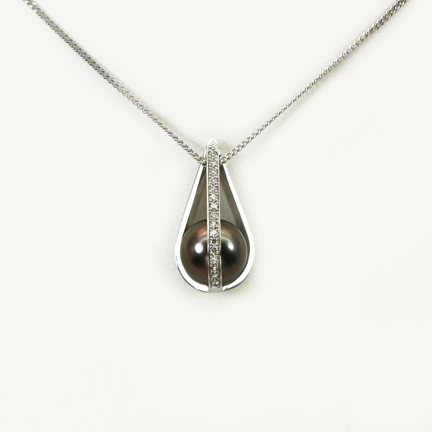 or blanc 18 carats – environ 2,30g – perle noire – brillants (0,12 carat)
