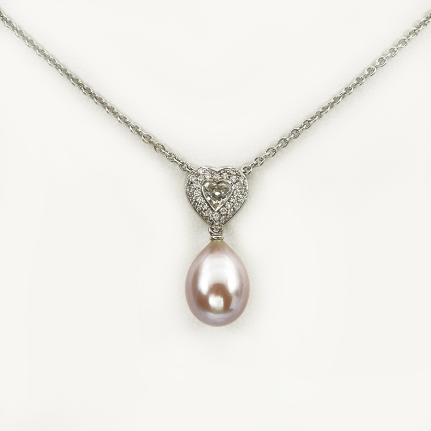 18 carats white gold – around 6,20g – diamond (0,36 carat) – brillants (0,22 carat) – pink pearl