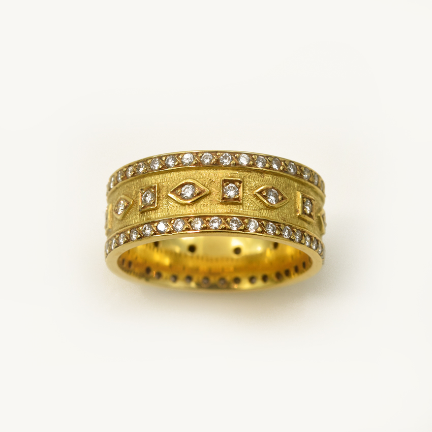 Inspired by the hieroglyphs, with his Egyptian wedding bands, David VANGELDER signs a line whose exoticism and daring stands out. In reference to Egypt’s greatest mysteries and memorable tastes first revealed by the frenchman, Champollion. The Egyptians express a character of exceptional finery and unique originality.