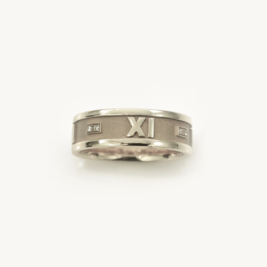 White gold, yellow gold or platinum, the secret of this wedding band lies in the unique character of the message it bears. A companion to travel with you through time, David VANGELDER eternalizes your marriage date in roman numbers. In plain gold or set with diamonds, this wedding ring will honour a love of countless days.
